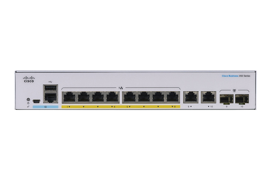 Cisco Business 350 switch | 8 10/100/1000 PoE+ ports with 67W power budget | 2 Gigabit copper/SFP combo ports - CBS350-8P-E-2G-IN
