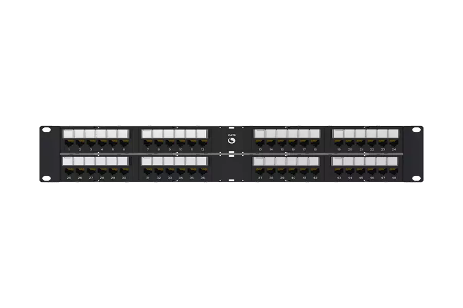 Angled Distribution Module Panel, Cat 6, UTP, 2U, 48 port