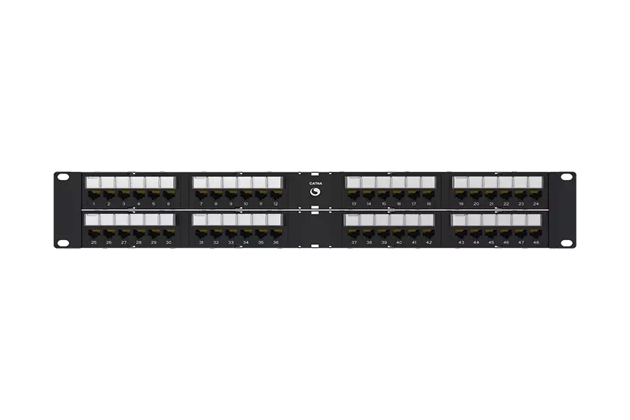 Angled Distribution Module Panel, Cat 6A, UTP, 2U, 48 port