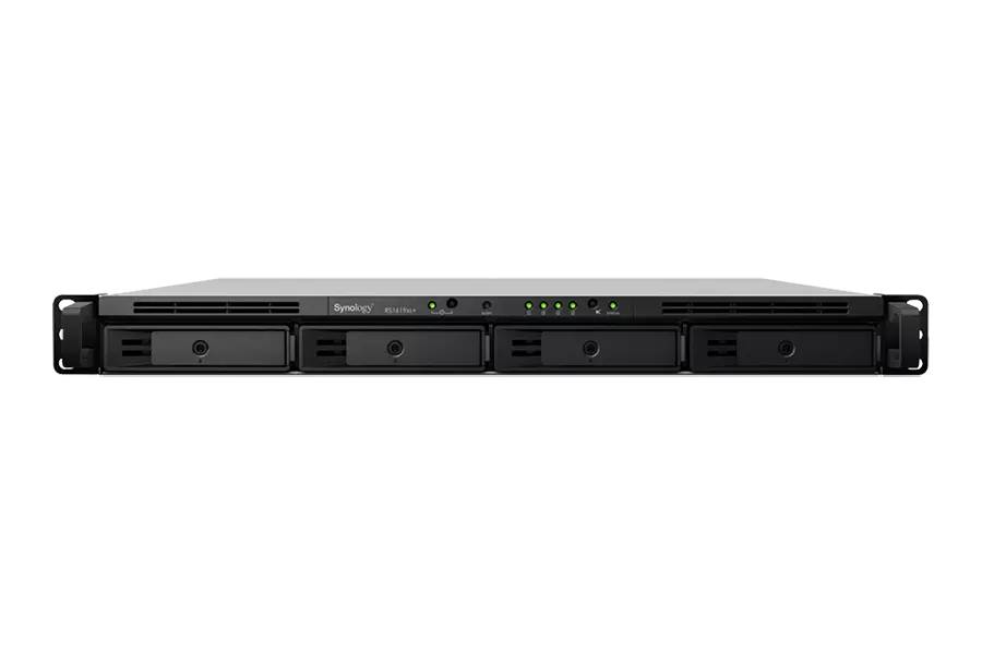 RS1619xs+ is a high-performance and scalable 1U rackmount NAS designed with upgradable memory and M.2 SSD cache configuration to meet the needs of modern businesses that require a flexible, reliable, and efficient storage solution.