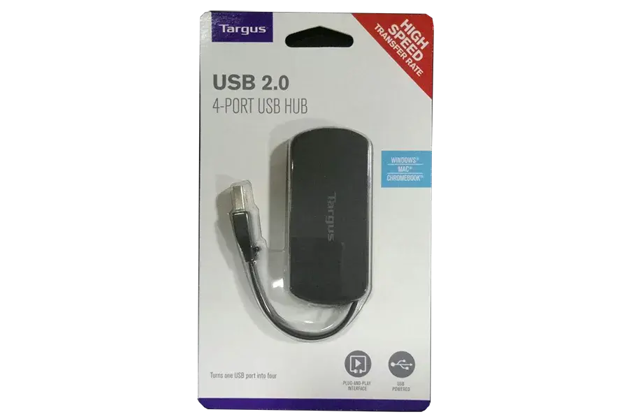 The Targus USB 2.0 4 Port Hub turns one USB port into four. Simply plug the hub into your computer's USB 2.0 port and enjoy a smooth connection and speedy transfer speeds. Overcurrent protection prevents short circuits and electrical current overload.